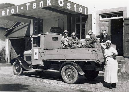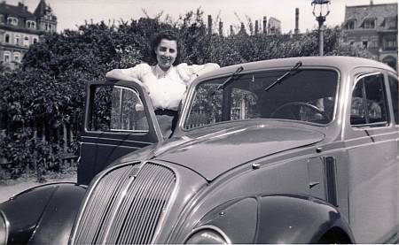 Links: Vater und Tochter, 1930er Jahre. – Rechts: Opel